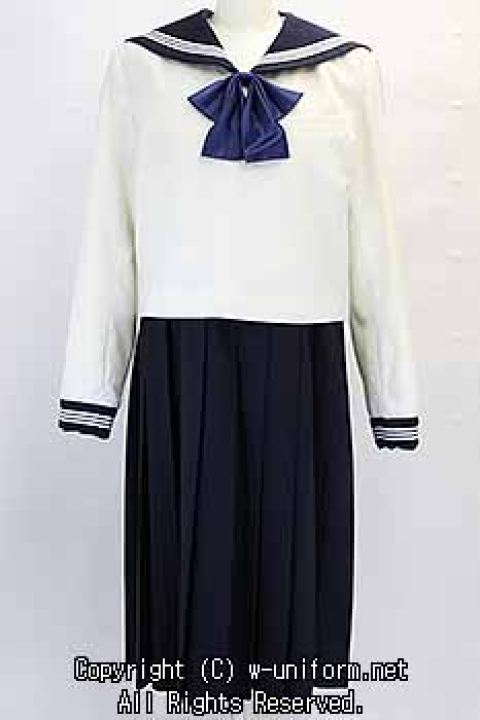 冬制服は、紺襟に白い3本ラインの入ったアイボリー色のセーラー服で、胸元には青いリボンを付けます。