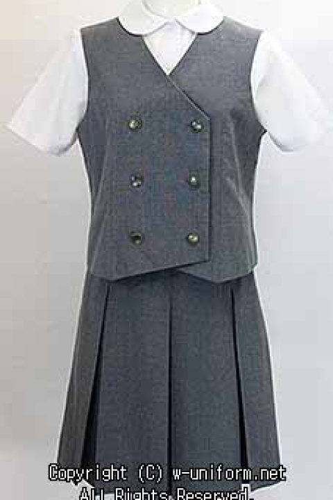 制服は、同色ベストとボックススカートの組み合わせで、胸元にはエンジのネクタイを付けます(こちらの制服には付属していません)。