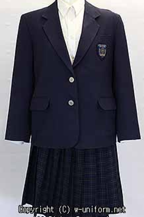 制服は、濃紺の2つボタンのシングルブレザーにチェックスカートの組み合わせです。またブレザー左胸にはエンブレムがあります。