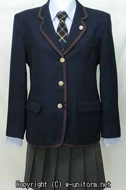 制服は、中学校がセーラー服で高校がブレザー服になります。高校のブレザー服は、紺色のシングルブレザーにグレーのプリーツスカートの組合せで、胸元にはチェック柄のネクタイか、リボンを付けることができます。ブレザーには茶色のパイピング(縁取り)が施され、愛国高校の特徴の一つでもあり、大変個性的です。中間期用として、キャメル色のセーターも付いています。