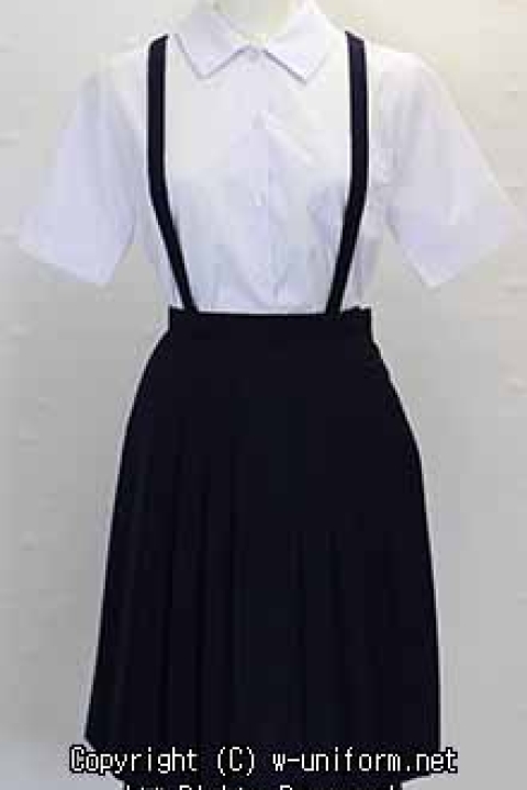 制服は、半袖ブラウスに吊りスカートの組み合わせです。