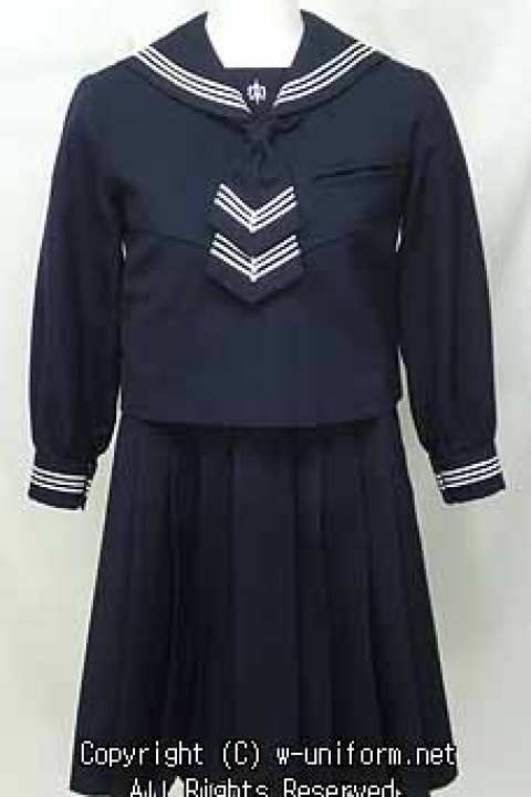 白百合学園の制服は、1951年に、現在のセーラー服(全国の姉妹校共通のデザイン)が採用されました。それ以来変わらない制服は、小中高共に白の3本ラインが入った紺のセーラー服で、胸元には3本ラインの入ったタイを付けます。また、胸当てと、セーラーカラー背面の両サイドにある校章の刺繍が特徴です。白百合学園の制服は、全国制服コンクールで1位になったことがある大変人気の制服です。