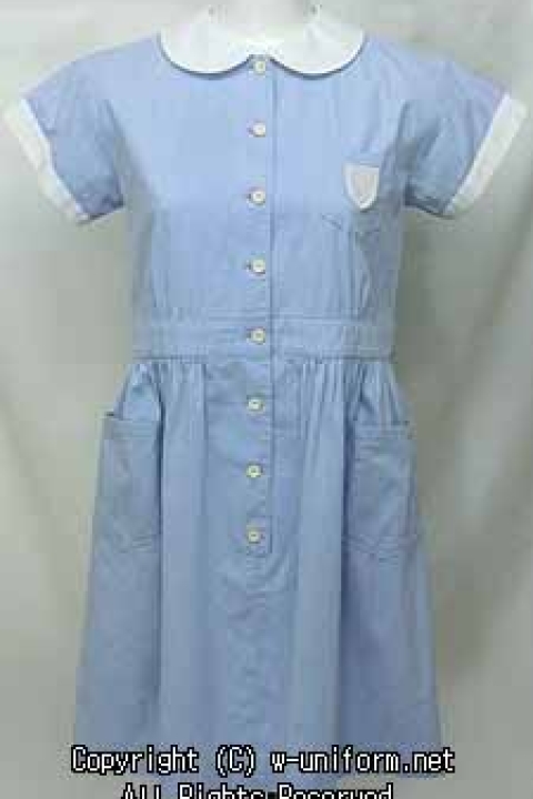 関東学院六浦小学校の制服は、冬はオーソドックスな紺ブレザータイプに対して、夏は、夏の清涼感を感じさせる爽やかな薄い水色のワンピースで、子供服のように大変可愛らしくデザインされています。