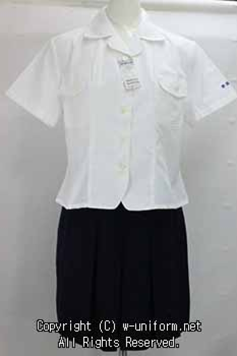 大谷高校は京都・大阪・他に位置する学校法人大谷学園が運営する学校です。旧夏服は、ウエストを細く絞ったマーメイドラインが綺麗な白いオーバーブラウスに紺のスカートを組み合わせています。