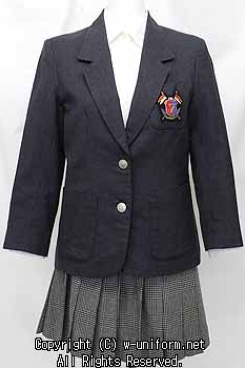 制服は、2018年度から新しくなりました。こちらの制服は旧型です。旧制服は中高同じ統一デザインの制服で、ボタンの色のみ異なります(中学が銀・高校が金)。冬服は、左胸の豪華なエンブレムが印象的なグレーの2つボタンシングルブレザーに千鳥格子柄のチェックスカートを組み合わせます。胸元には、特に何も付けません。また、ブラウスのカラーバリエーションが豊富にあり、自由に着用できます。