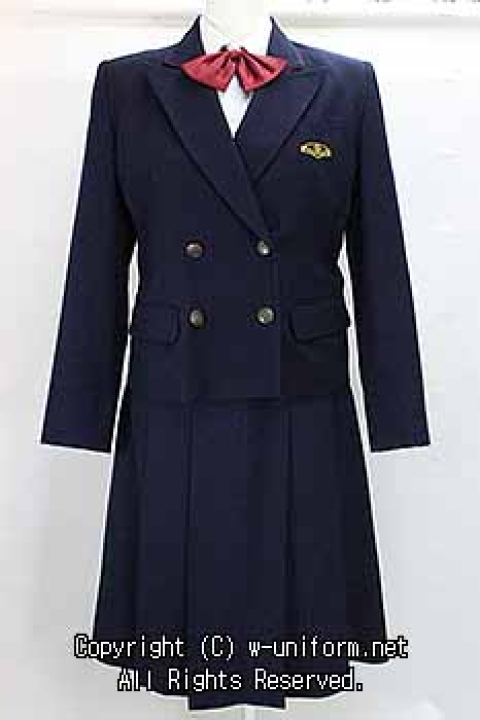 制服は、2002年度から共学になるのにともない、女子の制服として新しく制定されました。制服は宮本由利子さんによる個性的なデザインで、冬制服は襟にピンク色のパイピングがある紺のダブルのブレザーに、ボックスプリーツの組み合わせです。胸元には中学が赤で高校が紺のストライプ柄のリボンを付けます。