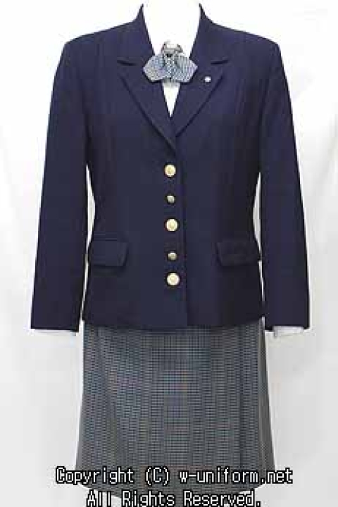 制服は、2012年度から新しいデザインになりました。こちらの制服は、1992年度から2011年度まで採用されていた旧型です。旧制服のデザインは、ニューヨークで活躍中の有名デザイナー、トッド・オールドハム氏によるもの。中高同じデザインですが、チェック柄のみ若干色が異なります。(赤チェックが中学、青チェックが高校)冬服のブレザーは、正面に5つの大小のボタンが交互に配置されているのが大変特徴的。また、スカートは正面から見ると巻きスカートのようにみえますが、背面から見るとしっかりとしたプリーツスカート。フォーマルな印象を残しつつもデザイナーのこだわりが細部にまで存分に盛り込まれた、非常に個性的な制服でした。